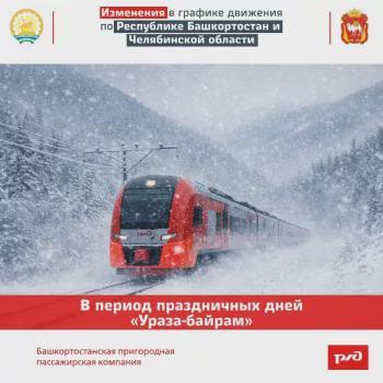 В марте 2026 года в связи с празднованием Ураза-байрам будет организовано движение дополнительных пригородных поездов по маршрутам в Республике Башкортостан и Челябинской области.